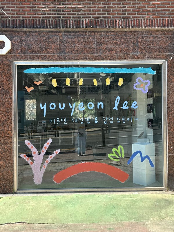 예전에 한 드로잉으로 꾸민 전시 공간 창문! 🎨 비가 그치고 날이 드디어 맑아졌어요! 😭 주말에 만나요!