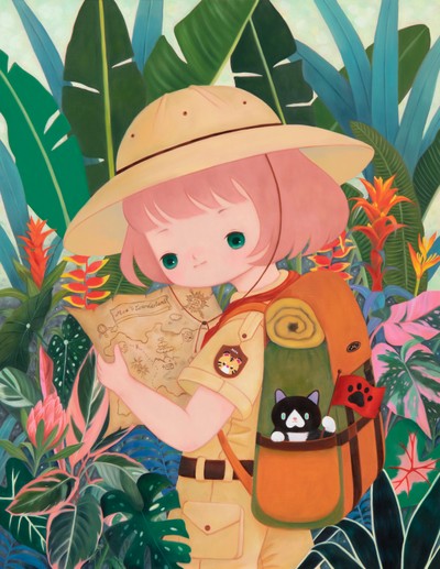<꽃꽃숨어라>는 우리가 인생을 살 면서 가끔은 어딘가로 숨고 싶은 날이 있듯, 꽃 속으로 꽃꽃숨겨주고자 작 업한 작품이다. 꽃들이 모여 지친 마음을 쓰 다듬어 줄 수 있 으니 숨고 싶을 때 언제든 와 꽃꽃숨기를 전한다. 작품 속 꽃 '플라플라 (플라잉플라워)'를 통해 달달한이유의 달달함을 표현하며, 나의 설레는 마음을 대변하기도 나를 지켜 주는 보호막이 되어주기도 한다 -아크릴 채색 / 큐빅작업 / 캔버스액자
