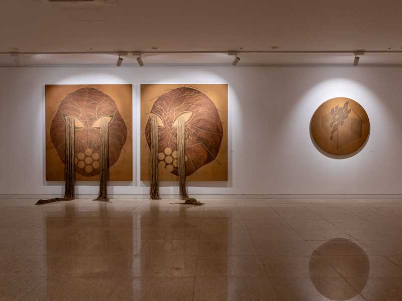 양대원의 작업은 동양과 서양, 회화와 조형, 감정과 구조의 경계를 넘나든다. 한지 배접, 토분, 커피, 오방색, 송곳으로 새긴 선 등 축적된 재료와 과정은 대지를 쌓아 올리는 행위이자, 유한한 삶과 시대적 사명에 대한 사유의 흔적이다. 그의 회화는 어떤 장르로도 단정되기보다는, 가장 한국적인 감각으로 동시대의 인간을 바라보는 하나의 태도에 가깝다. 그렇게 양대원의 동글인은 오늘도 묻는다. 우리는 무엇을 감추고, 무엇에 동화되어 살아가고 있는가.