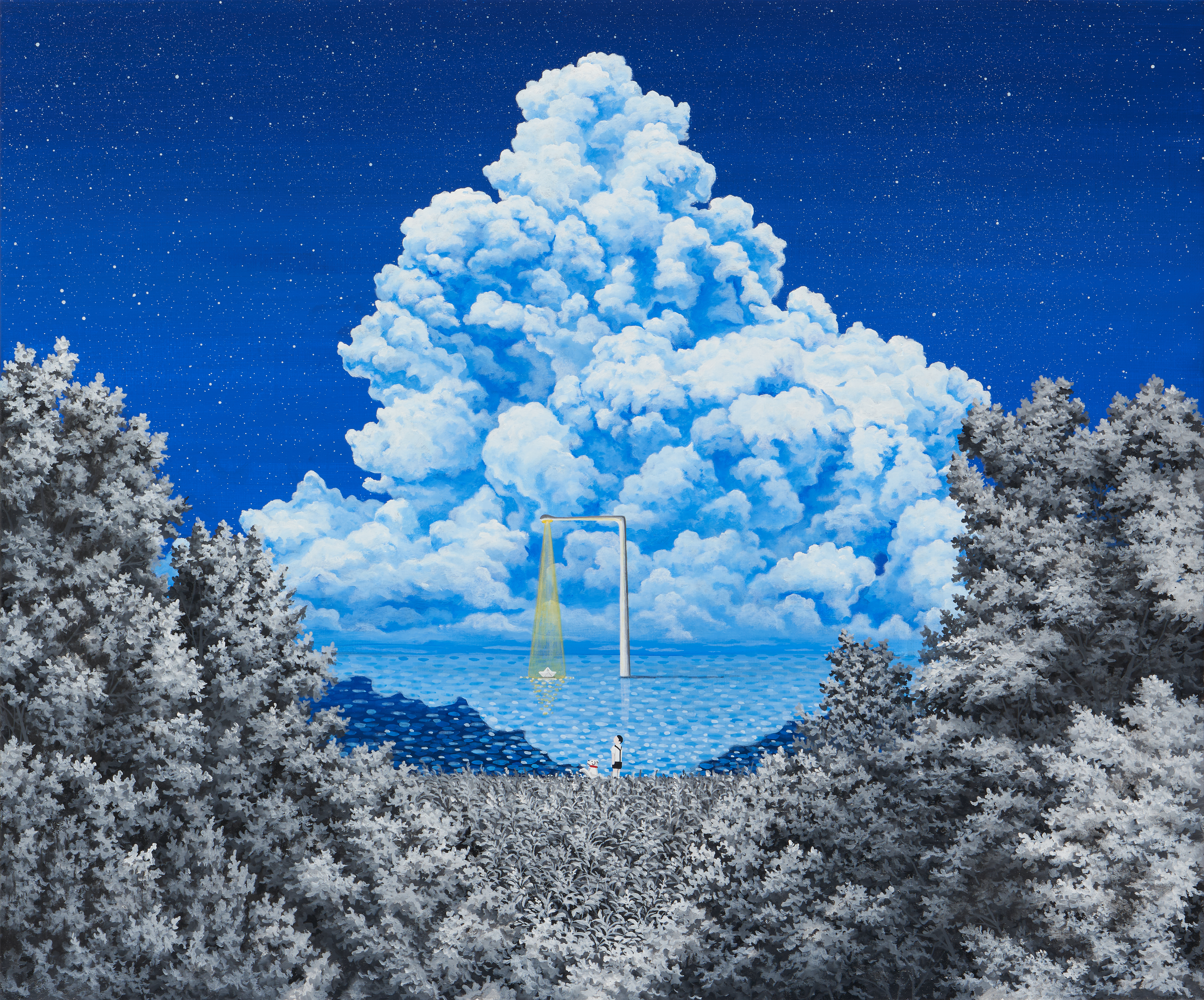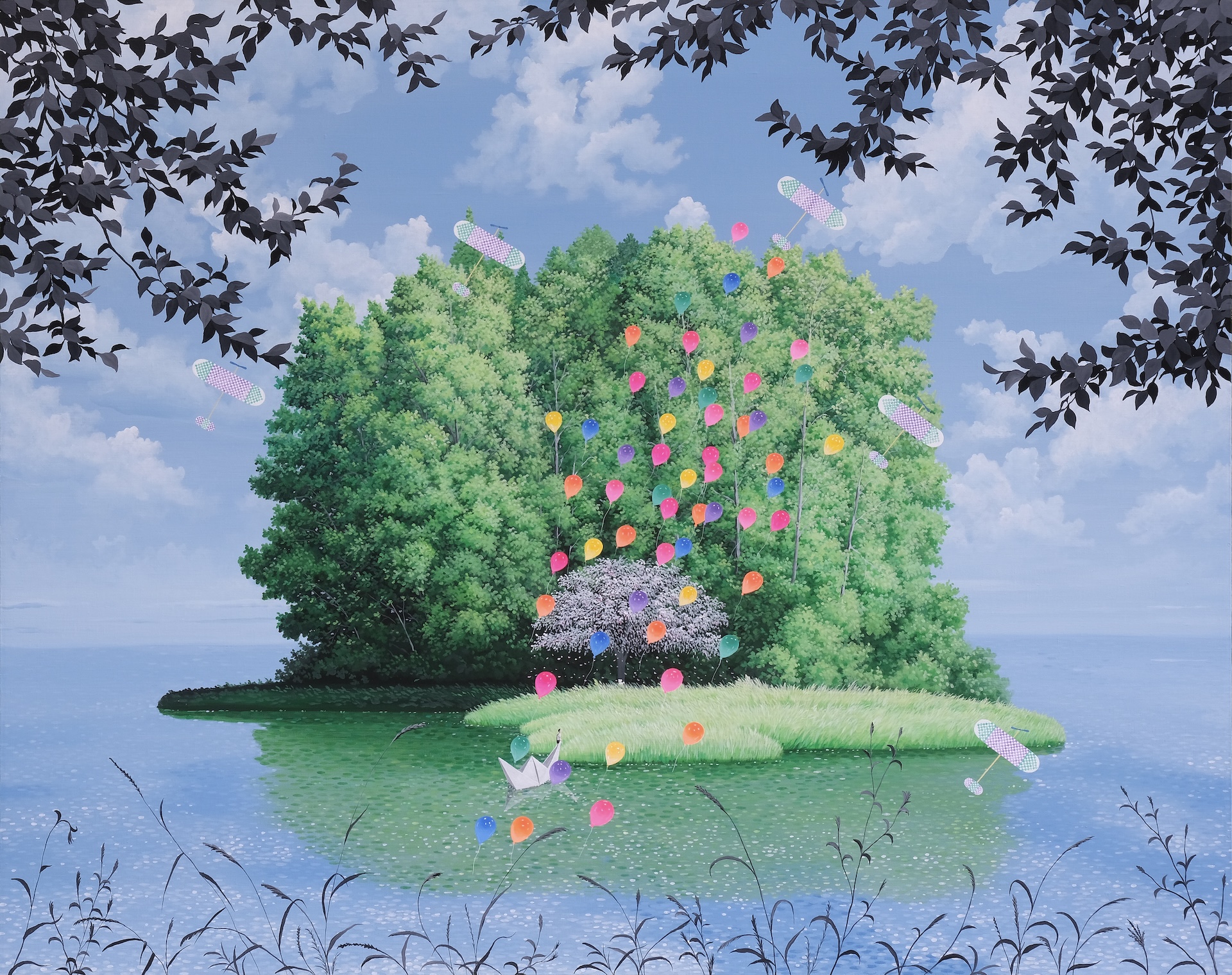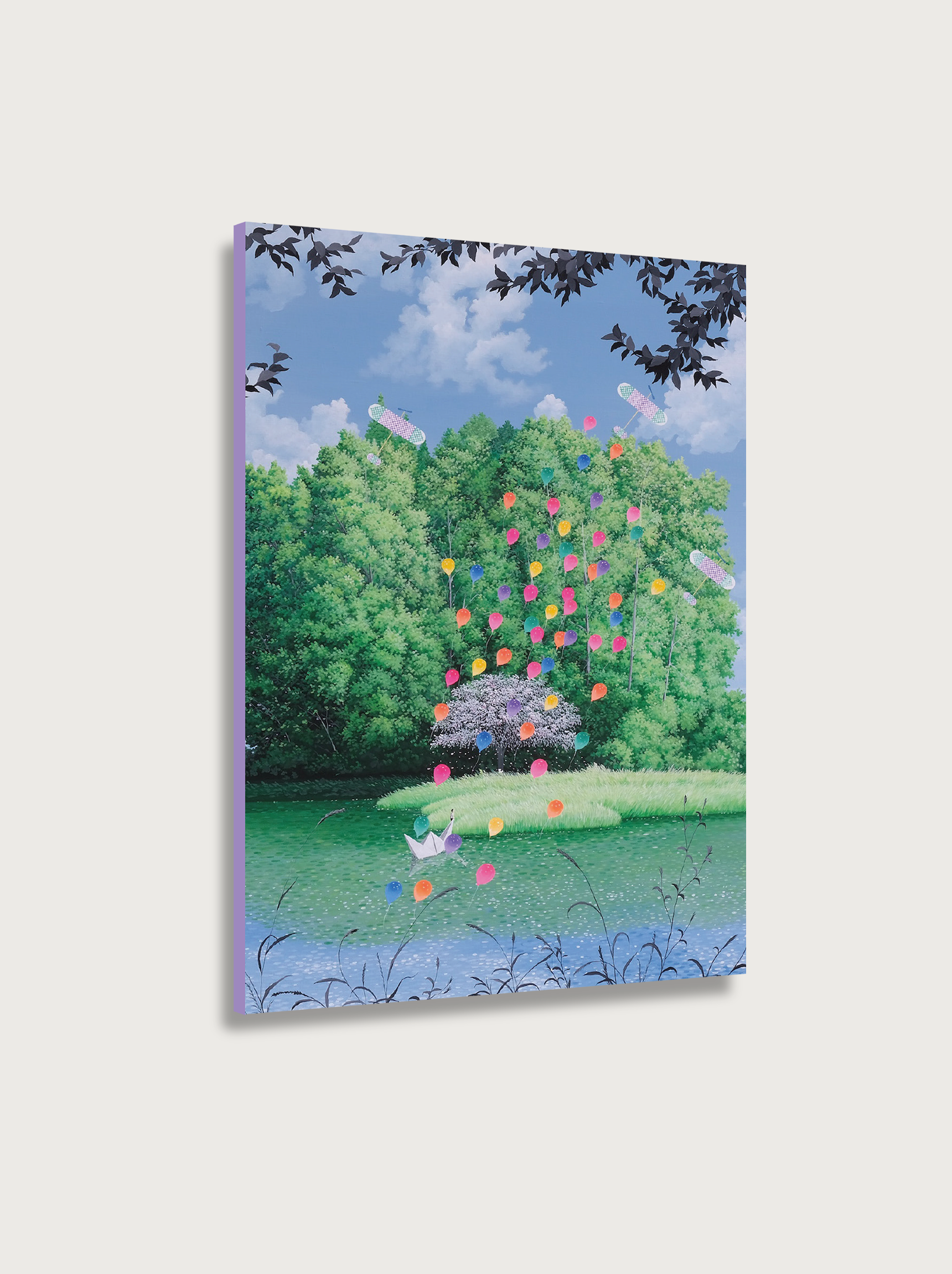 심봉민의 화면 속에는 늘 한 아이가 등장한다. 어린 시절의 ‘나’를 닮은 존재다. 아이는 하늘을 향해 글라이더를 날리고, 멀리 나아가길 바라는 마음으로 종이배를 띄운다. 숨바꼭질을 하고, 강아지 다롱이와 함께 시간을 보낸다.