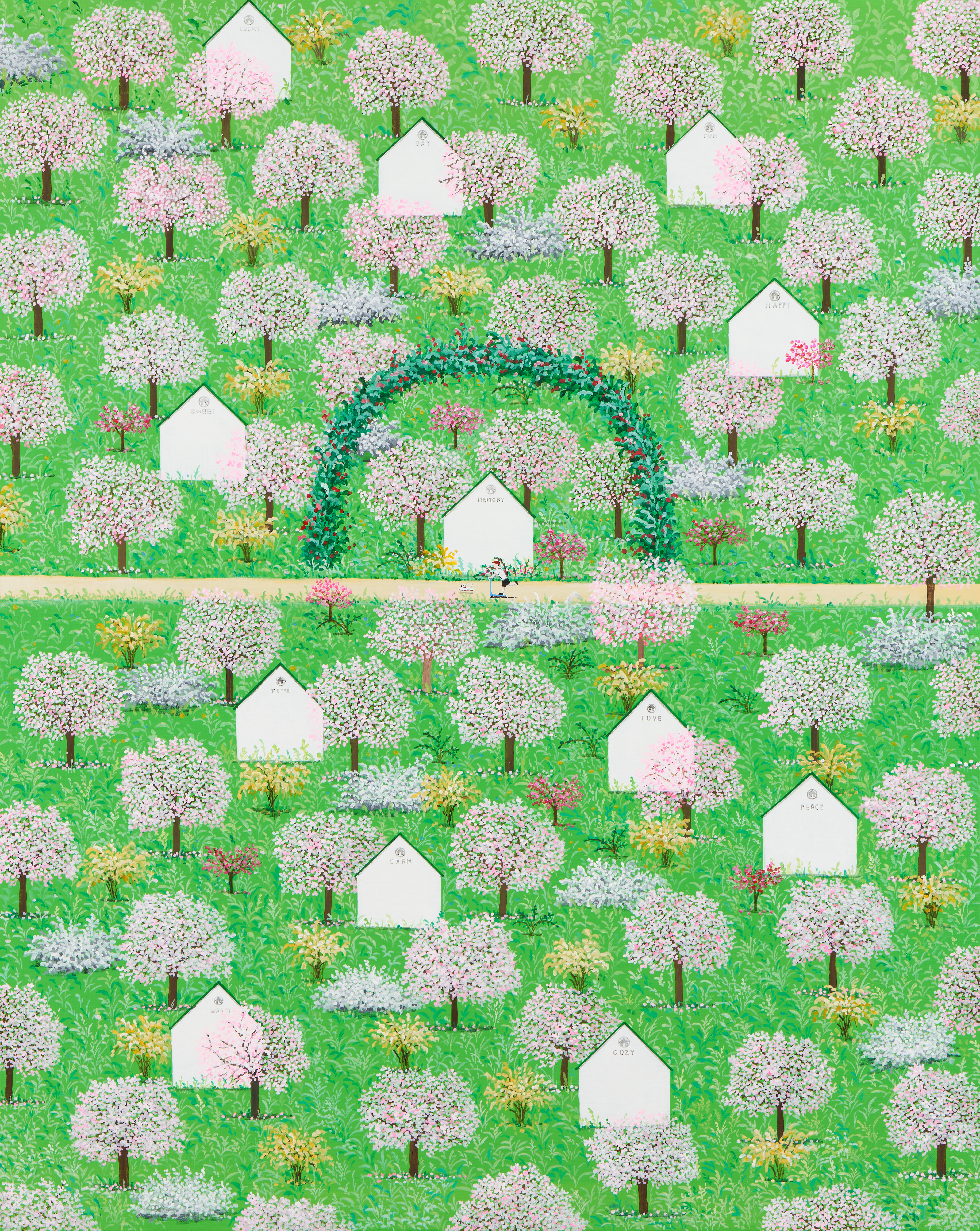 작품 속 아파트 역시 중요한 요소다. 어디에서나 볼 수 있는 평범한 공간이지만, 작가에게는 어린 시절의 기억이 스며든 가장 특별한 장소다. 그의 화면은 단순한 풍경이 아니라 과거의 시간과 감정이 교차하는 하나의 ‘정원’이며, 관람자는 그 안에서 숫자, 사물, 흔적처럼 숨겨진 요소들을 발견하며 자신의 기억을 더듬듯 작품을 경험하게 된다.
