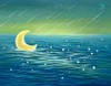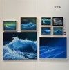 아크릴로 그려진 푸른 바다와 노란 그믐달, 흩뿌려진 빛의 점들이 몽환적인 야경을 구성한다. 물결과 빛의 흐름이 반복적으로 중첩되며, 바다를 하나의 거대한 밤하늘처럼 느끼게 하는 시적 장면을 제시한다.