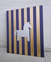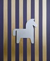 수직으로 반복되는 골드와 딥 퍼플의 색 띠가 묵직한 공간감을 만들고, 그 앞에 부유하듯 놓인 말의 실루엣이 시간과 기억의 축적을 상징한다. 합성수지와 나무, 미디움 아크릴이 결합된 팝적인 형상은 촉각적 질감과 함께 패턴, 동물, 오브제의 관계를 또렷하게 드러낸다.