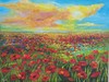 화면 가득 펼쳐진 꽃밭은 발치에서부터 수평선 끝까지 이어집니다. 앞쪽에는 붉은 꽃들이 두텁게 쌓인 아크릴 물감으로 겹겹이 피어 있어, 한 송이 한 송이가 바람에 살짝 흔들리는 순간을 그대로 붙잡아 둔 듯합니다. 꽃잎의 붉은색과 주황, 다홍빛이 서로 스며들며, 막 피어오...see more