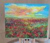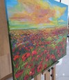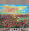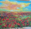 두텁게 올린 아크릴 물감으로 구현된 붉은 꽃밭과 노랑·오렌지·분홍빛 구름이 맞닿는 풍경은, 바람과 향기, 빛의 떨림을 동시에 품은 장면으로 완성됩니다. 현실의 특정 장소라기보다 마음속 깊은 곳에 쌓인 따뜻한 기억의 들판을 시각화한 작품입니다.