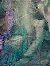 오일 페인팅 특유의 깊이 위에 겹겹이 쌓인 선형 텍스처가 ‘필드 바이브레이션’이라는 개념을 촉각적으로 구현한 작업이다. 청록·남색·보라 계열의 색면이 중첩되며, 상호 의존적으로 변화하는 하나의 추상적 장(場)을 형성한다.