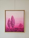캔버스 위에 오일로 구현된 픽셀화된 나무들은 자연과 디지털 이미지 사이의 경계를 탐색한다. 단일 계열의 핑크 색조가 화면 전체를 지배하며, 정적인 풍경 속에 미세한 떨림과 리듬을 부여한다.