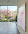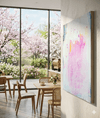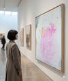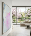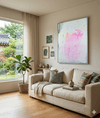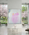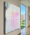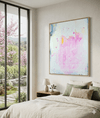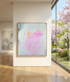 물기 어린 회백색 바탕 위에 형광에 가까운 핑크 레이어가 하나의 기운처럼 솟아오르고, 그 위를 다시 흰색이 덮으며 흐름과 흔적을 남긴다. 중앙의 희미한 필기 같은 선들은 의미를 지운 채, 사고와 호흡의 리듬만을 남기며 ‘말하기 직전’의 시간을 오래 머물게 한다.