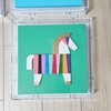 선명한 그린 배경 위에 떠 있는 말은 합성수지(PLA)와 나무로 이루어진 단순한 도형이다. 색의 면과 줄이 몸 안에서 이어지며 패턴을 대신하고, 매트한 표면의 결은 촉각을 먼저 불러온다. 이 형상은 특정한 말이 아니라 기억 속에서 최소한으로 남은 말의 기호이며, 관람자...see more