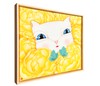 강렬한 노란 꽃의 만개와 푸른 눈의 고양이, 두 마리 나비가 대비를 이루며 삶의 가장 빛나는 순간을 상징적으로 드러낸다. 부드러운 곡선과 과장된 큰 눈, 잔잔한 미소는 걱정보다는 설렘과 기대에 마음을 머물게 하는, 따뜻하고 다정한 정서를 품고 있다.