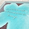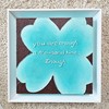 민트색 네잎클로버가 화면을 가득 메우고, 그 위에 손글씨처럼 돌출된 문장 “You are enough a thousand times Enough.”가 놓인 추상·패턴 회화입니다. 아크릴과 혼합재료, 돌가루가 만들어내는 대비적 텍스처와 민트·브라운의 색 대비가, 따스하고 단단한 자기 확언의 감각을 응축하고 있습니다.