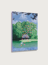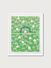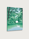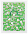 하네뮬레 종이에 아카이벌 피그먼트 잉크로 제작된 30부 한정 에디션으로, 밀도 높은 초록 정원과 흰 집, 꽃나무가 패턴처럼 펼쳐진 풍경화이다. 화면 중앙을 가로지르는 길과 아치형 덩굴, 그리고 그 위를 달리는 작은 존재가 ‘씽씽이’라는 제목과 만나, 정원 속 짧은 여행의 기억을 시각화한다.