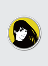 원형의 머스터드 옐로우 배경 속에 흑백 대비로 그려진 여성의 얼굴이 강렬한 실루엣을 형성한다. 아크릴 특유의 선명한 발색과 또렷한 경계가, 단순한 구성을 시각적으로 강한 아이콘으로 끌어올린 작품이다.