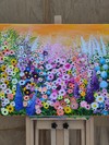 화면을 가득 메운 꽃밭은 마치 약속이라도 한 듯, 서로 다른 색과 형태가 한 방향으로 피어오르며 하나의 거대한 물결을 만듭니다. 두텁게 올린 아크릴 물감은 꽃잎 하나하나를 세밀하게 묘사하기보다, 손끝에 남아 있던 온도와 박동을 그대로 옮겨 놓은 듯 촉촉한 표면을 만들어...see more