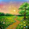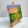 아크릴 레이어링으로 구현된 저녁 하늘과 꽃길, 나무가 어우러진 풍경화로, 빛이 번지고 스며드는 과정을 섬세한 색채와 질감으로 포착했다. 일상 속 스쳐 지나가는 빛의 순간을 작은 캔버스에 응축해, 시간의 결과 온기의 흐름을 고요하게 드러낸다.
