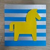 아크릴과 나무, PLA를 결합해 말 모양을 입체적으로 도려낸 뒤, 파랑과 실버의 가로 줄무늬 위에 노란 말 실루엣을 부각시킨 작품이다. 상상화·사랑·동물이라는 주제가 밝은 색채와 간결한 형태로 응축되어, 하나의 상징적 캐릭터처럼 기능한다.