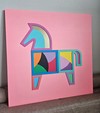 핑크 배경 위에 단순화된 말의 실루엣과 두 개의 사각 프레임 안 기하학적 색면이 대비를 이루며, 동물이라는 주제를 현대적 그래픽 언어로 풀어낸 작품이다. 아크릴과 목재, PLA가 결합된 구조적 화면은 오브제에 가까운 존재감을 가지며, 사랑과 유희의 감정을 시각적으로 응축한다.