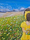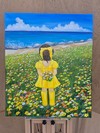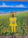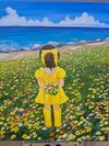 두터운 아크릴 터치로 표현된 들꽃과 파도, 바위의 질감이 서로 다른 시간의 속도를 담아내며 화면 전체에 리듬을 부여한다. 관람자는 소녀의 뒷모습을 따라 발밑의 꽃에서 수평선까지 시선을 옮기며, 건네지 못한 말과 시작되지 않은 순간들을 떠올리게 되는 서정적 장면과 마주한다.
