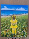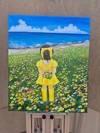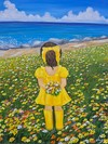 짙은 블루의 바다가 수평선까지 이어진 뒤편으로, 노란 원피스를 입은 소녀가 해변을 향해 서 있습니다. 화면의 중앙에 자리한 소녀는 관람자를 등진 채, 파도와 바위, 모래사장이 만나는 경계를 조용히 바라보고 있습니다. 뒤로 살짝 모은 두 손에는 작은 들꽃다발이 꼭 쥐어져...see more