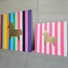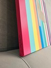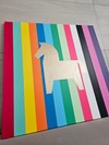 60x60cm 정방형 캔버스 위에 아크릴로 구현된 이 작품은, 다채로운 수직 색띠 위에 배치된 말의 기호적 실루엣을 통해 패턴, 동물, 인테리어적 요소를 하나의 평면 안에 통합한다. 강렬한 색 대비와 단순한 형태가 어우러져, 현대적인 장식 회화이자 상징적 아이콘으로 기능하는 작업이다.
