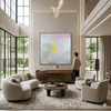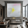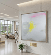 옅은 회색과 흰색 레이어 위에 노랑과 핑크의 색면, 그리고 반쯤 지워진 문장이 포개져 일상의 한 순간과 그 뒤에 남은 감정의 여운을 기록한다. 비어 보이는 여백은 사실상 지워지고 남은 목소리와 기억이 잠시 머무는 장소로 작동하며, 말로 다 옮길 수 없었던 마음의 온기를 은근히 드러낸다.