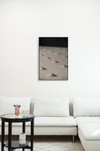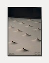 넓은 화면을 가득 채운 모래 위로 작은 언덕들이 일정한 간격을 두고 반복됩니다. 각 언덕의 꼭대기에는 갈색 달걀 하나가 반쯤 묻혀 있고, 부드러운 곡선의 모래 더미와 타원형의 달걀이 만나 정제된 기하학적 패턴을 형성합니다. 화면 상단의 짙은 암부와 하단으로 내려오며 밝...see more