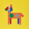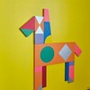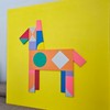 노란 바탕 위에 기하학적 블록으로 구축된 말의 실루엣이, 상상 속 동물에 대한 애정 어린 시선을 간결하게 드러낸다. 아크릴과 미디움이 만들어내는 또렷한 색면과 나무의 두께감이 결합되어, 회화이자 오브제에 가까운 존재감을 형성한다.