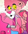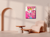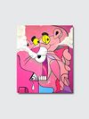 만화적 이미지가 삼각형, 곡선, 패턴으로 쪼개지고 이어지며 하나의 거대한 기하학적 초상으로 재구성된다. 과장된 눈, 이빨, 구름 형상의 흰 연기 등 상징 요소들이 팝아트와 큐비즘 사이를 오가듯 배치되어, 익숙함과 낯섦이 공존하는 화면을 만든다.
