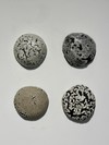 가변 크기의 세라믹 조각은 둥근 돌이나 알을 연상시키는 형태 위에 불규칙한 검은 흔적을 남겨, 안정과 긴장이 공존하는 표면을 만든다. 추상 조각이지만, 생명과 시간의 흔적을 암시하는 질감과 패턴을 통해 조용한 서사를 생성한다.