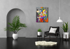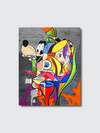 아크릴과 오일 스틱으로 구현된 굵은 윤곽선, 원색의 블록, 분절된 만화 캐릭터가 혼재하는 대형 캔버스다. 기하학적 패턴과 만화적 이미지를 해체·재구성해, 동시다발적인 감정과 시간을 한 장면에 압축한 듯한 인상을 남긴다.