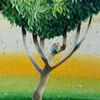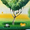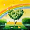 오일로 그려진 하트 나무와 무지개, 노란 하늘이 어우러진 상상적 자연 풍경화다. 섬세한 잎사귀 묘사와 두터운 색면, 점묘적 별빛들이 감정의 떨림과 따뜻한 여운을 동시에 전한다.