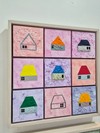 아크릴과 혼합재료로 거칠게 쌓아 올린 표면 위에 아홉 채의 작은 집이 그리드 구조로 배치되어, 개별성과 조화가 동시에 드러난다. 반복되는 사각형과 집의 형상은 집단 속 개인을 상징하며, 다채로운 색의 조합이 ‘합창’이라는 제목처럼 공동체의 화음을 연상시키는 추상적 장면을 완성한다.
