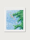 하네뮬레 종이에 아카이벌 피그먼트 잉크로 제작된 30부 한정 에디션으로, 작가의 서명과 넘버링이 포함된 작품입니다. 수면 위를 떠가는 종이배와 바람에 실려 나아가는 풍선, 이를 감싸는 나뭇잎의 구성이 ‘바람이 지나가며 남기는 흔적과 감정’을 부드럽게 시각화합니다.