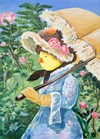 따뜻한 봄날의 산책 장면을 모도리 스타일 캐릭터로 재해석한 작품으로, 아크릴 특유의 선명한 색감과 경쾌한 붓질이 인상적이다. 여성·상상화·동물이라는 주제가 자연스럽게 겹쳐지며, 클래식한 분위기와 귀여운 유머가 동시에 드러난다.