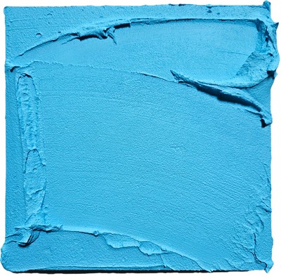 화강암가루를 섞은 두터운 아크릴 물감이 나무 패널 위에 올려지고, 다시 긁히고 눌리며 하나의 푸른 장(field)을 이룬 작품이다. 단순한 색면처럼 보이지만, 표면의 미세한 결과 두툼한 가장자리의 흔적들이 ‘무의미를 지나 의미에 닿는’ 삶의 반복과 회복을 응축한다.