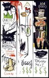 1982년의 대표적 바스키아 스타일이 응축된 이 작품은, 정육점 간판과 같은 단어들을 종교화의 형식 위에 배치하며 현대 소비사회를 비틀어 보여줍니다. 지클리 프린트로 재현된 선의 거칠음과 색의 불균질함이 원작의 에너지와 긴장감을 충실히 전달합니다.