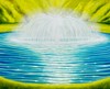 캔버스 위에 유화로 그려진 이 작품은 분수와 호수, 그리고 주변의 녹음을 단순화된 구성과 선명한 색채로 표현한 풍경화입니다. 수면 위에 반짝이는 윤슬과 부드럽게 번지는 물보라가 어우러져, 정지된 화면 속에서도 끊임없이 움직이는 물의 리듬을 느끼게 합니다.