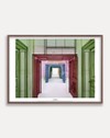 밝은 흰색 바탕 위로 여러 겹의 문틀과 복도가 차례로 이어지며, 서로 다른 색의 반투명한 구조물이 깊은 원근감을 형성합니다. 초록, 붉은 자주, 파랑, 연분홍 등으로 나뉜 문과 벽은 실제 건축 구조라기보다 가벼운 천으로 짜인 윤곽선처럼 보이며, 서로를 통과해 겹치면서 ...see more