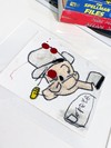 미니멀한 구성 속에서 캐릭터의 얼굴과 파이프, 그리고 붉은 도색이 시선을 끄는 현대적 초상화이다. 만화적 친숙함과 실험적 재료 사용이 겹쳐지며, ‘유명 인사’ 이미지를 가볍고도 낯설게 비튼 작업으로 읽힌다.