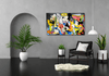 기하학과 패턴, 만화적 이미지가 충돌하듯 뒤섞인 대형 회화로, 익숙한 캐릭터성이 분절·재조립되며 새로운 서사를 생성한다. 선명한 색채와 파편화된 구성이 화면 전체를 긴장감 있게 채우며, ‘해체(Deconstruction)’라는 제목처럼 원형의 의미를 흔들고 재해석하게 만든다.