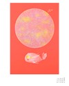 단색에 가까운 강렬한 붉은 바탕 위로, 미세한 선과 점으로 짜인 거대한 달과 몽환적인 생명체가 공존하는 상상적 풍경이다. 고요한 정적과 내밀한 생동감이 극적으로 대비되며, 생명의 탄생과 성장, 그리고 우주적 고독을 함께 환기한다.