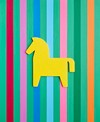 매트한 수직 색띠 위에 합성수지와 나무로 만든 노란 말이 살짝 떠 있는 듯 배치된 구조가 특징이다. 반복되는 패턴과 미세한 어긋남, 그림자가 만든 깊이감이 결합되며, 단순한 형상 속에 축적된 시간과 기억의 레이어를 상기시키는 회화·오브제 혼합 작업이다.