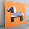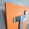 목재 패널 위에 아크릴로 구현된 이 작품은, 직선과 평면만으로 말의 형상을 최소 단위까지 환원한 상상화이다. 선명한 오렌지와 다채로운 스트라이프의 대비가 화면을 지배하며, 장난감처럼 단단하고 평평한 물성이 공간 속 오브제에 가까운 인상을 준다.