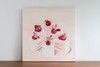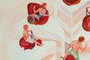 아크릴과 모델링 페이스트로 구축된 케이크 조각과 과일, 그리고 그 위에서 각자의 행위를 반복하는 인물들이 만들어내는 장면이다. 일상의 무게를 잠시 내려놓고 달래는 ‘각자의 방식’을 시각화하며, 황혼 무렵의 고요한 감정을 부드러운 색조와 대비 강한 레드 톤으로 표현한다.