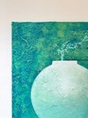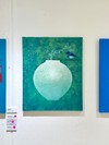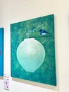 달빛을 품은 달항아리와 그 위에 앉은 청조가 만나는 찰나를 포착한 작품으로, 하늘의 뜻과 복된 기운이 조용히 스며드는 순간을 표현한다. 아크릴과 두터운 텍스처를 활용해 화면 전체에 달빛 같은 발광감을 부여하며, 전통 길상 상징을 현대적으로 재해석한 점이 특징이다.