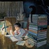 종이에 구아슈로 그려진 이 작품은 책상에 엎드려 사색하는 소년과 그를 둘러싼 개와 책, 작은 사물들을 통해 일상의 동반자들을 담담하게 보여준다. 은은한 빛과 차분한 색조가 화면 전반을 감싸며, 고요하지만 내밀한 정서를 섬세한 붓질로 구현한다.