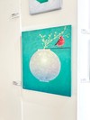 달빛처럼 은은히 빛나는 달항아리 위에 붉은 새가 내려앉는 찰나를 포착해, 예상치 못한 행운의 방문을 상징적으로 풀어낸 아크릴 회화다. 풍부한 텍스처와 균열 표현, 선명한 색 대비를 통해 고요와 설렘이 공존하는 독특한 장면을 만들어낸다.