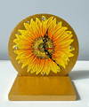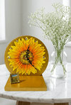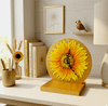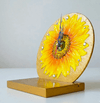 원화 그대로의 입체감이 느껴지는 밝고 화사한 해바라기 탁상시계 단순히 평면적인 그림이아니라 물감을 두껍게 쌓아 올린 입체기법을 사용하여 꽃잎 하나 하나의 결이 살아있으며, 꽃의 씨앗부분도 디테일하게 재현하여 시각적으로 생동감이 느껴집니다. 원형 시계판 전체와 받...see more