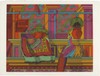 이 작품은 르네상스적 실내를 연상시키는 구조 속에 공작과 화려한 카펫, 식물과 조각상이 공존하는 장식적 풍경을 담고 있다. 스크린프린트 특유의 평면성과 선명한 색 분할을 활용해, 공간 전체를 하나의 거대한 패턴처럼 경험하게 만드는 것이 핵심이다.