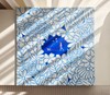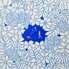 짙은 블루를 배경으로 한 작은 장면과, 그것을 감싸는 거대한 흰 꽃무리가 강렬한 대비를 이루는 아크릴 회화입니다. ‘함께 걷는 시간’이라는 일상의 순간을, 우주와 정원 사이 어딘가의 상징적 풍경으로 확장해 보여줍니다.
